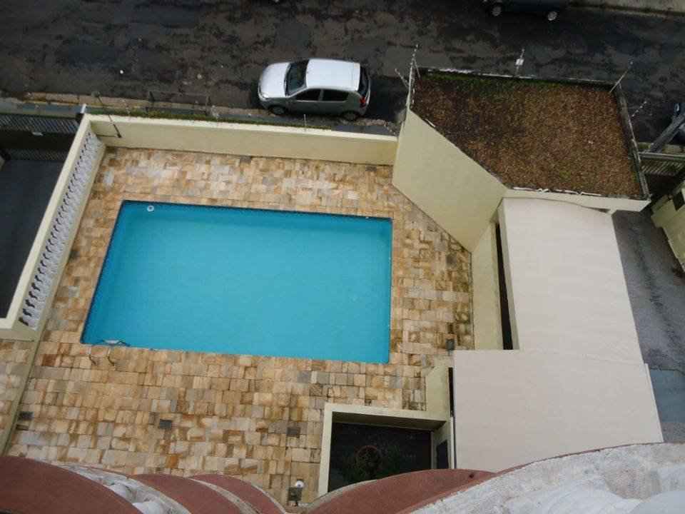 Área de lazer com piscina, churrasqueira.